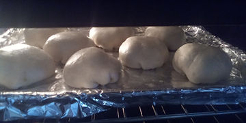 After 1 hour, remove dough and place on lightly floured surface. break dough in half and half again. Repeat with each chunk untiol you have 16 pieces (each weighing approximately 4 oz)