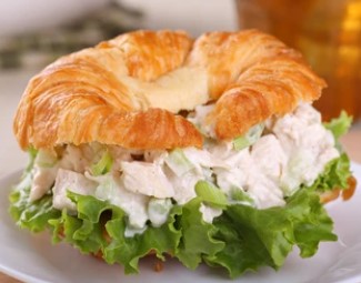 Remove cold, shredded chicken from refrigerator and dump chicken into the bowl with the chunky dressing. (If adding grapes, do so now) Stir until well blended and serve on croissants, crackers, bread of your choice, or toast of your choice. (We LOVE serving this with vegetable flavored round crackers…that rhyme with WITZ…..)