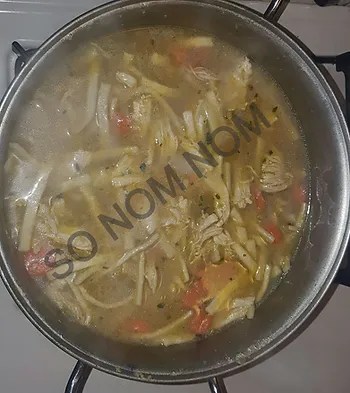This Easy Method Chicken Noodle soup is easy and delicious! Make your own dumpling noodles to add a special touch and a more delicious end result! #SoNomNom4u