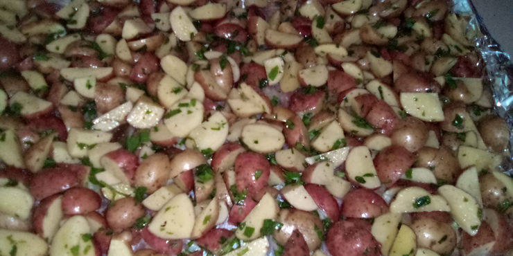 2 lbs creamer potatoes, cut quarters. We get ours from Imperfect foods!