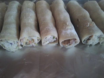 In the cleaned out food processor, add cabbage (or slaw mix), lemongrass sticks, green onions, and ginger. Pulverize all ingredients until it is finely chopped. Pour into a fine mesh sieve and push to get all the juices out. Dump back into a bowl and add lemongrass paste, salt, cornstarch and pepper. Add pulverized cooked chicken and stir until well blended