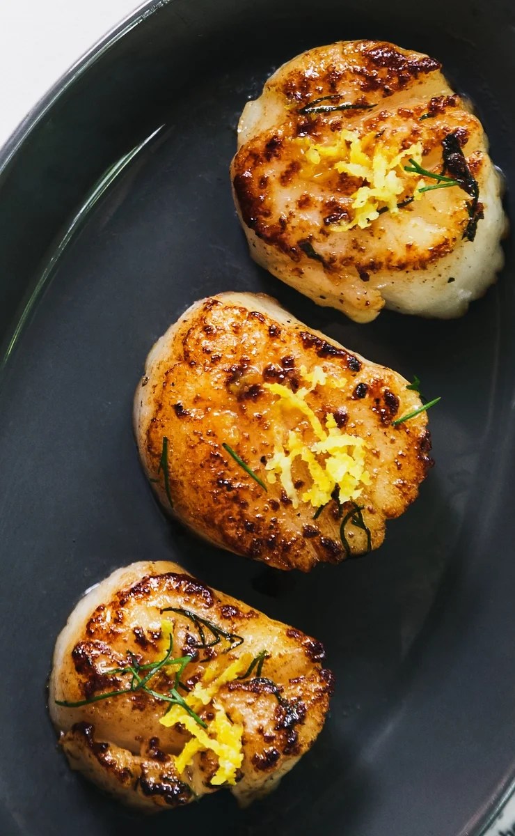 Remove from pan and serve them sizzling hot with drizzled butter from the pan over the top of them and a dash of fresh lemon zest and/or fresh dill on top.