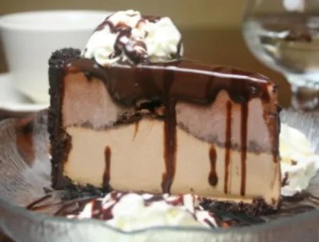 Cut into 8ths and place a piece on a plate. Drizzle with chiocolate syrup and add a dollop of Whip cream. To be extra fancy, sprinkle cookie powder and espresso on top. Serve cold and delicious!