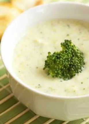 In a large pot, melt 2 TBSP butter. Add onions and cook until they become transparent. Add broth and bring to a boil. Add broccoli and continue boiling for an additional 4 minutes. Add garlic powder. Turn heat down to Medium low and add Half & Half and both kinds of cheeses. Stirring constantly, cook until all the cheese is completely melted. DO NOT BRING TO A BOIL AGAIN.